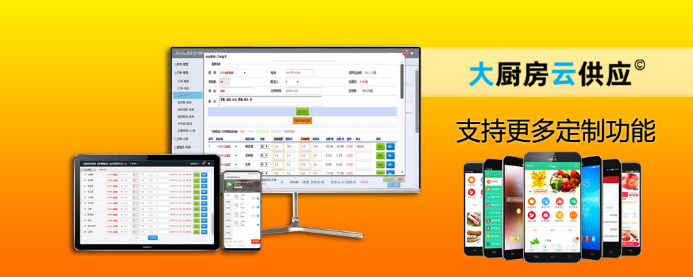 【大厨房云供应】大厨房云供应系统是一款专为配送公司及餐饮店设计的综合性数据管理软件,旨在通过云端技术,优化供应链管理流程,提升运营效率,降低成本,增强客户满意度。本系统集成了下单、分拣、审单、库存管理、财务报表等核心功能,实现供应链的数字化、智能化管理,让餐饮及配送业务更加高效、透明。以下是对其特点的具体阐述: