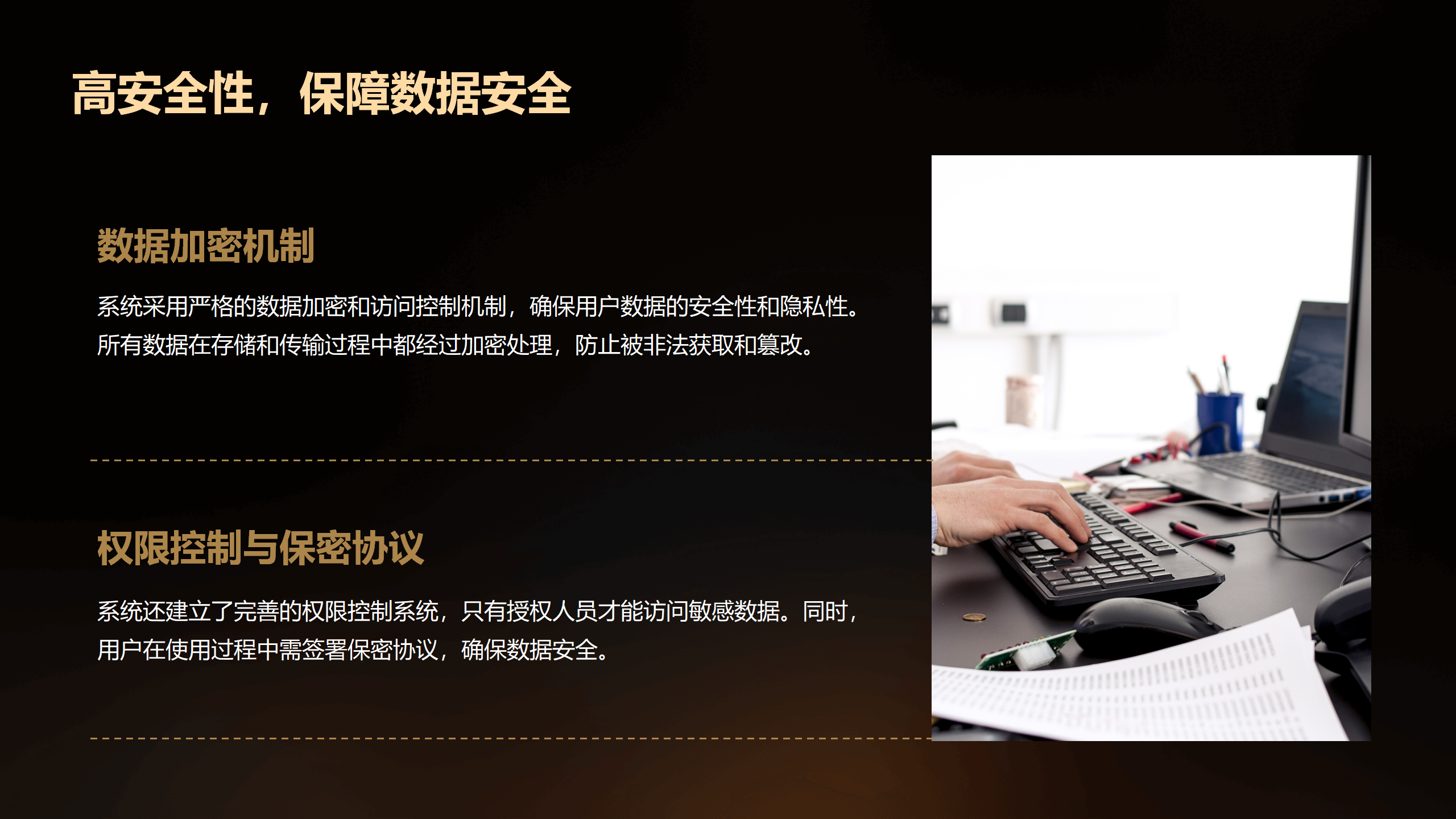5. 高安全性,保障数据安全:系统采用严格的数据加密和访问控制机制,确保用户数据的安全性和隐私性。